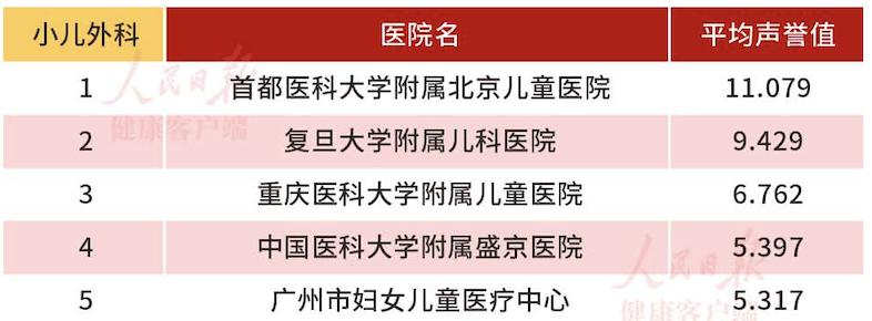 8、小儿外科:盛京医院挤进前五,上海新华医院被挤出