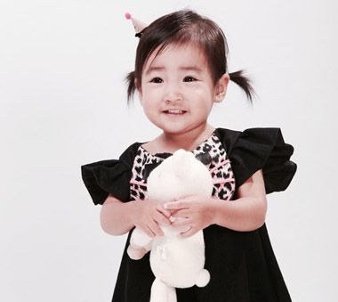 五官看上去是比较端正,几丝的齐刘海看上去也是特别显可爱,后面的短发是有着层次感的梳扎的设计,中间的头发是有着层次感的梳扎,落落大方的设计。
