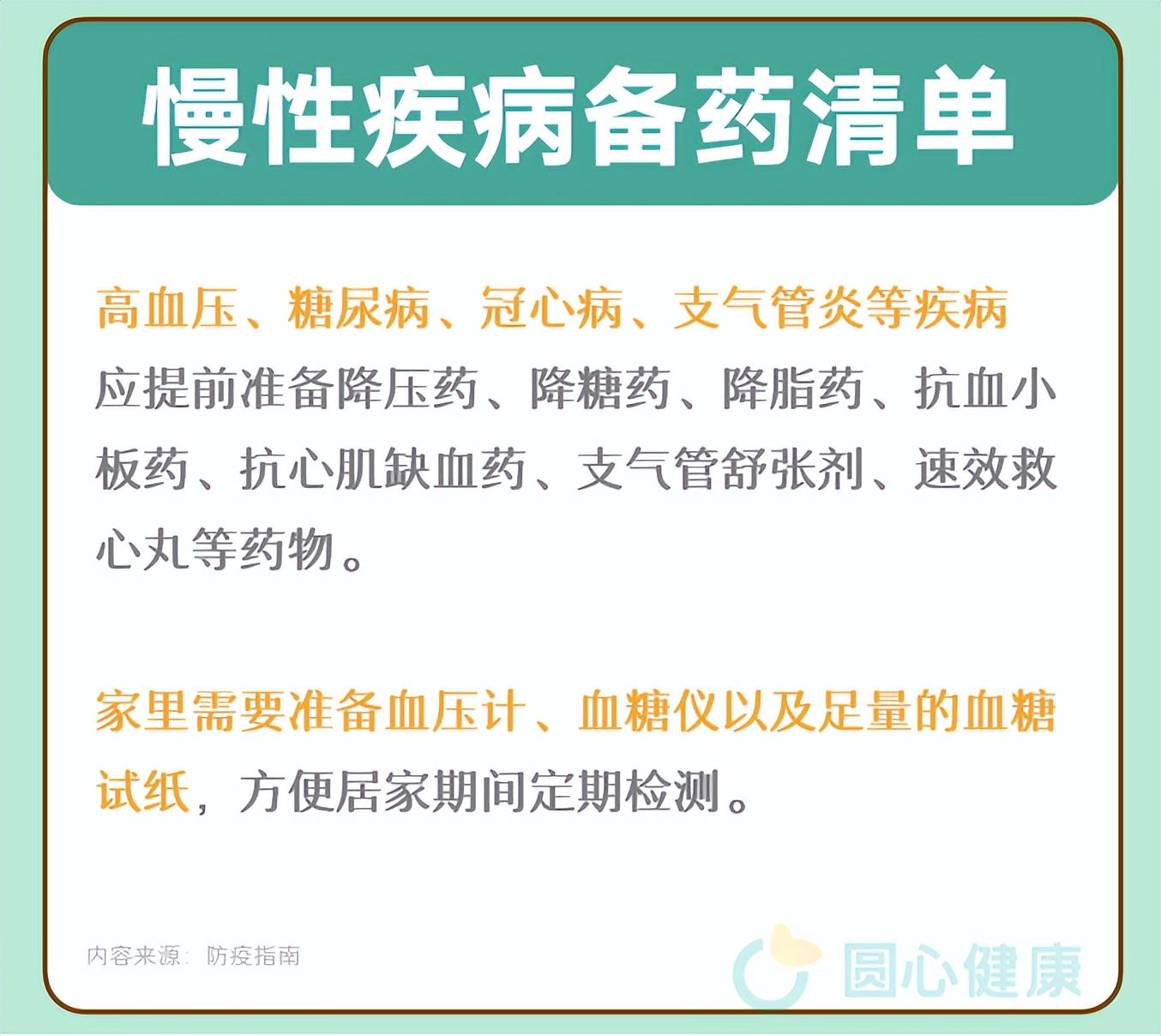 因老人和慢性疾病人群用药具有特殊性和针对性,建议大家根据自己需求和常用药物进行储备。以下清单主要从类别上进行说明及总结。